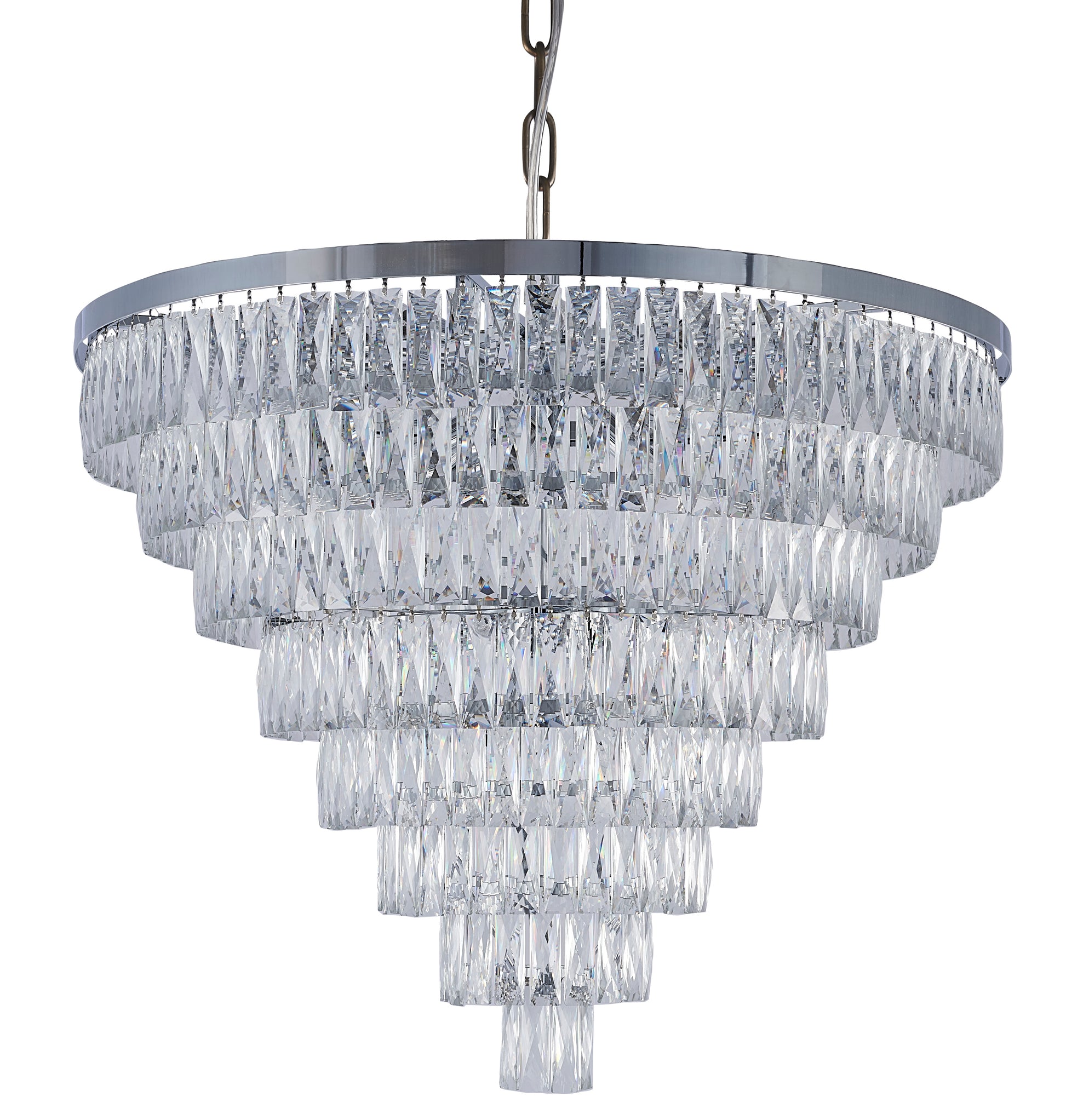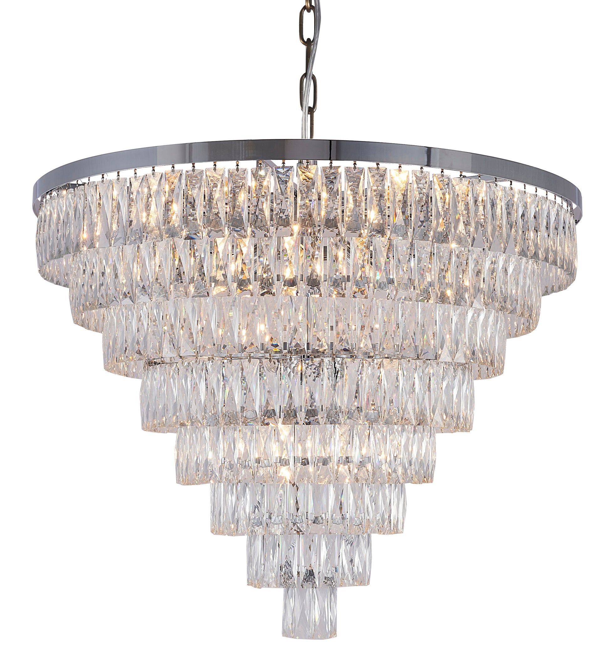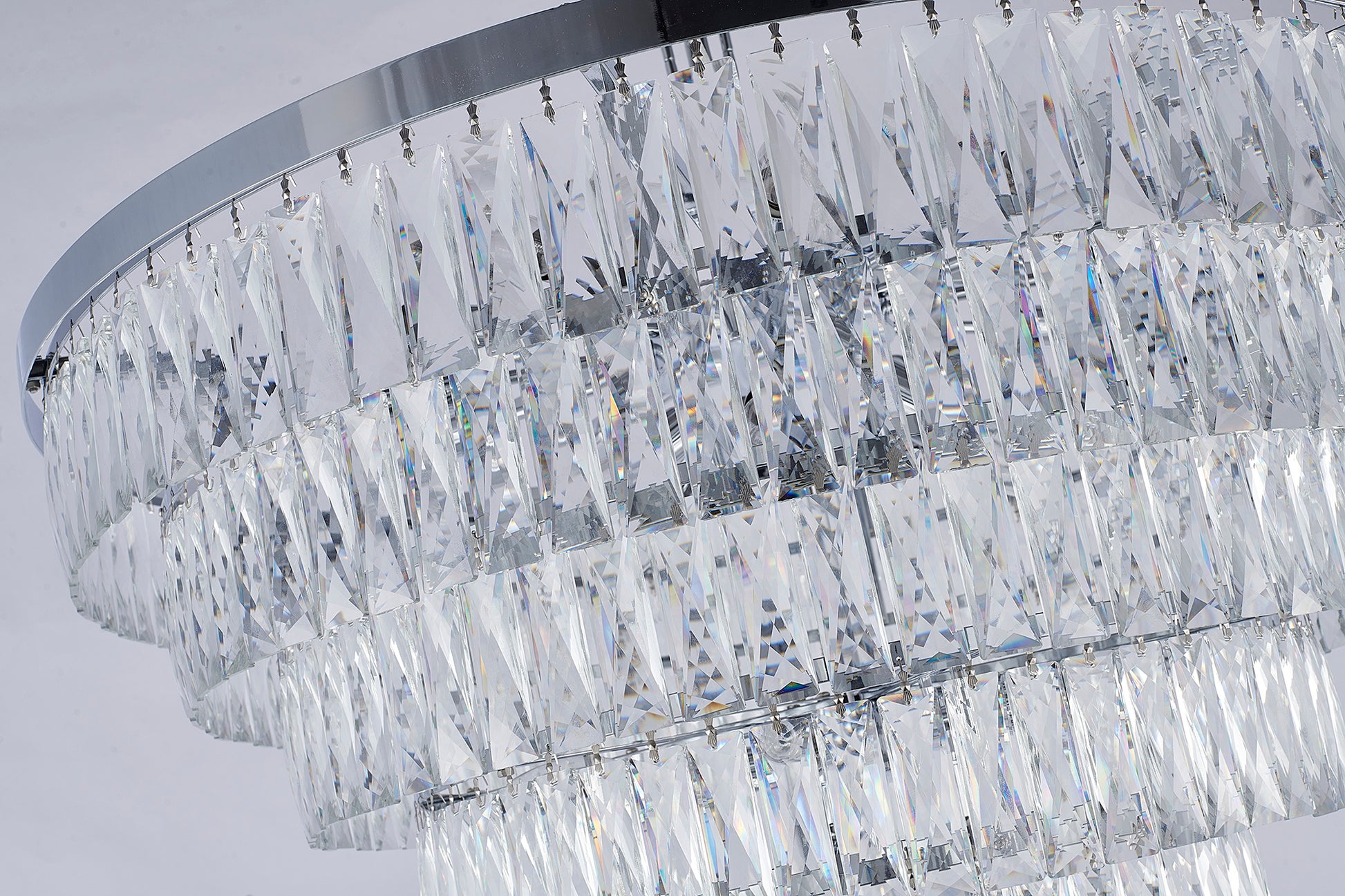 Transform your living space into a luxurious oasis with the OC46C36CH chandelier. This stunning eight-tier chandelier features a dazzling chrome finish and a sturdy metal frame adorned with sparkling clear hanging crystals. Easily adjustable chain links add a touch of timeless elegance to your modern aesthetic.